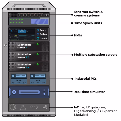 · Ethernet Switch & Communications Systems: High-performance industrial-grade Ethernet switches and comms modules ensure deterministic and low-latency data exchange across the stack. These support protocols like IEC61850, Modbus TCP, MQTT, and OPC-UA for broad interoperability with utility and OEM hardware.