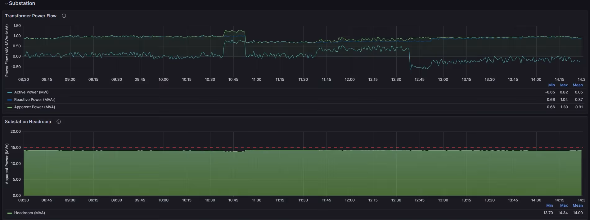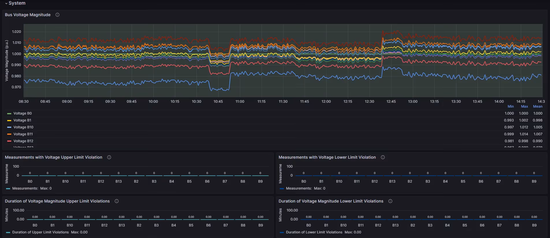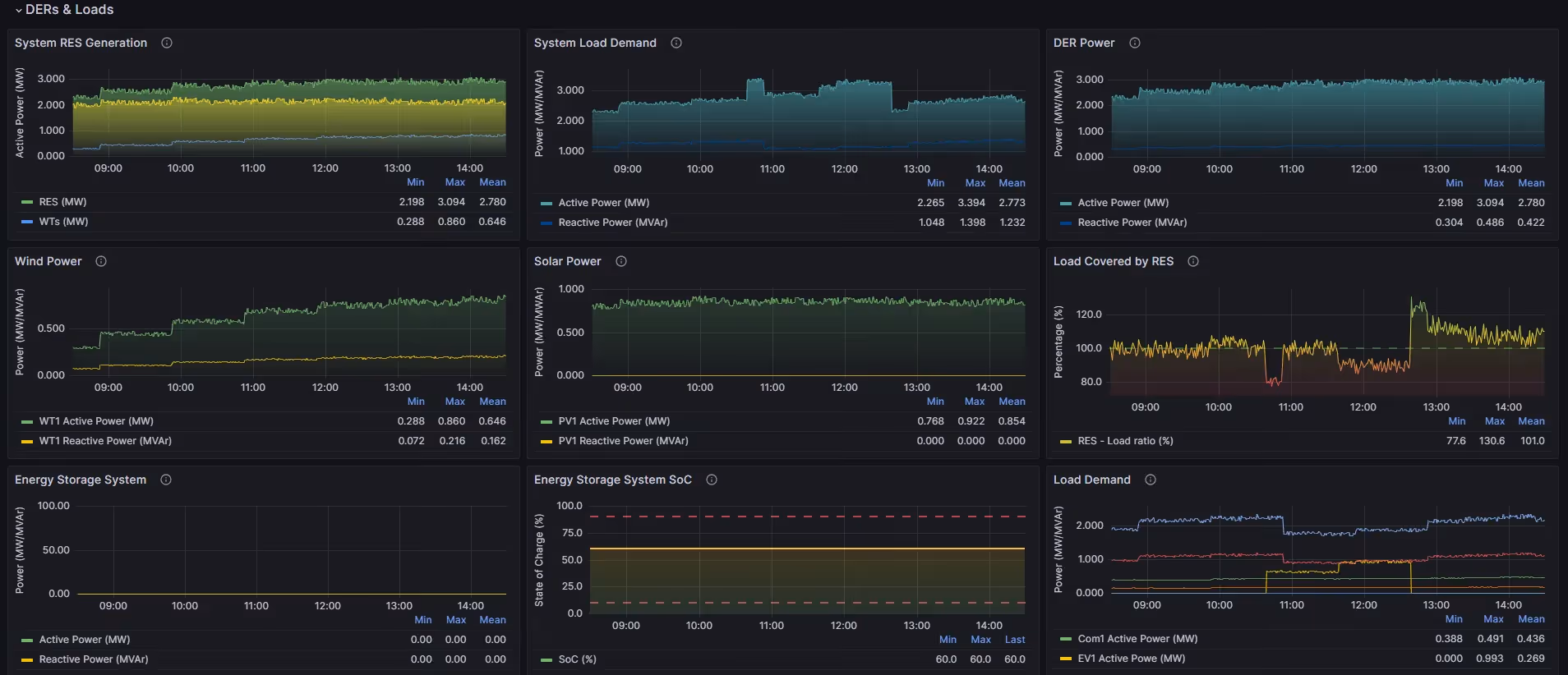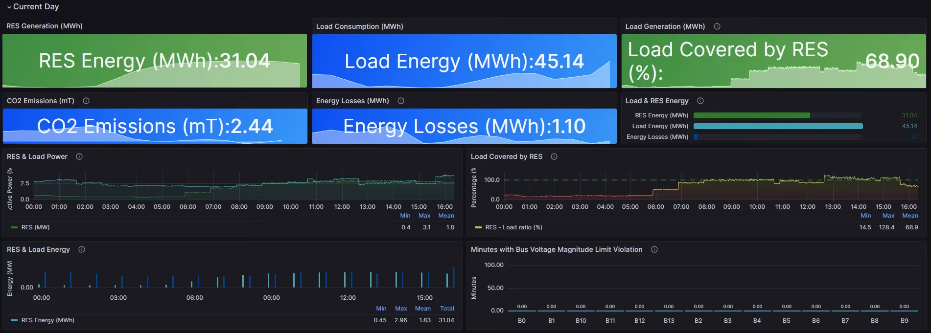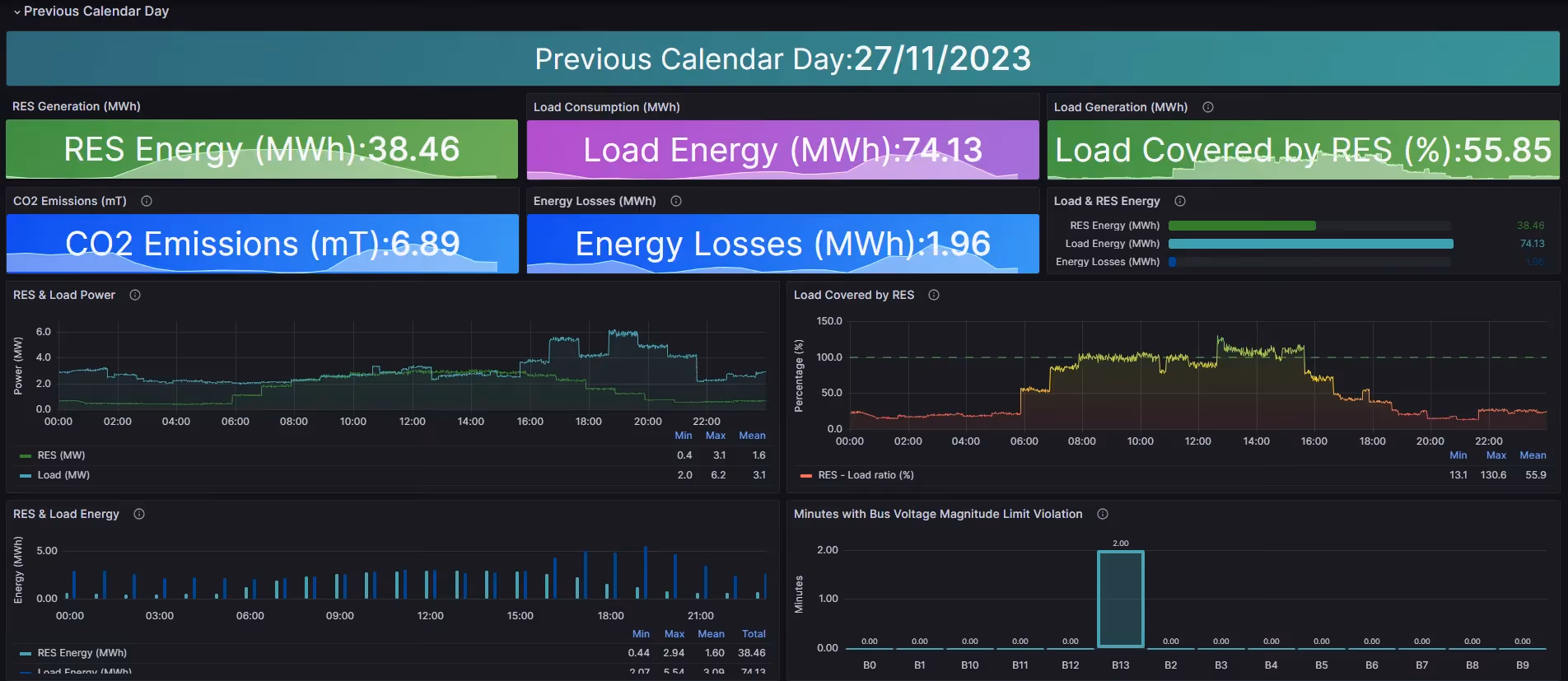 Enhanced Data Visualisation: Users can now visualise raw measurements collected from the network, with the ability to examine statistical values (e.g, minimum, maximum, and average) over selected periods. The user can choose the network components (e.g, buses and energy assets) being visualised ad-hoc from a drop-down menu for targeted analysis.