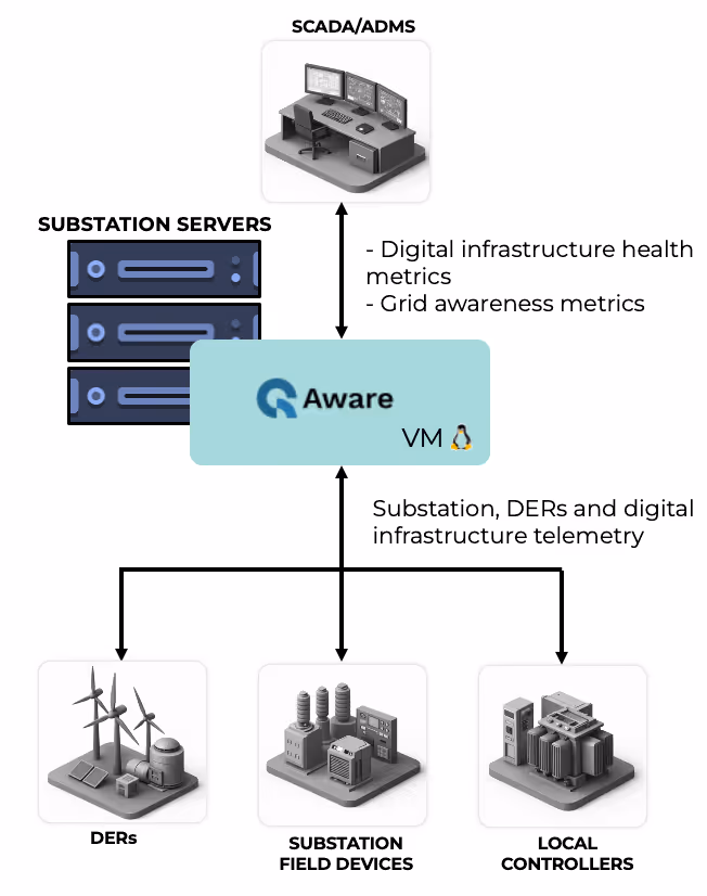 This architectural shift is critical. Traditionally, substations functioned as measurement forwarding points—telemetry was pushed upstream, and intelligence resided centrally. In high-DER environments, that model introduces latency, bandwidth strain, and fragmented situational awareness. By contrast, edge-based awareness enables pre-processing, anomaly detection, event correlation, and metric generation locally, reducing reaction time and improving resilience. Infrastructure health monitoring—CPU loads, communication integrity, packet performance—runs alongside grid metrics, ensuring that both electrical and digital layers are continuously supervised. The result is a substation that understands not only electrical behaviour but also its own operational integrity.